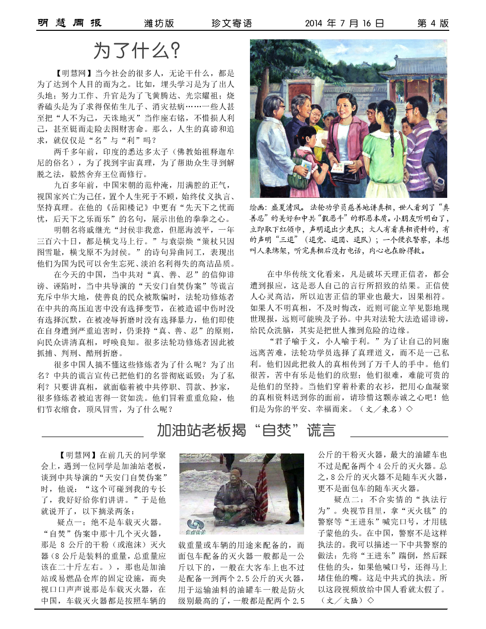 《明慧周报:潍坊版》 第 287 期,2014年07月16日出版