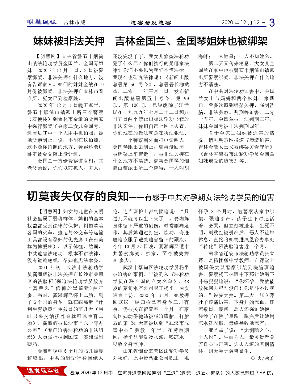《明慧周报:吉林市版》 第 320 期,2020年12月12日出版