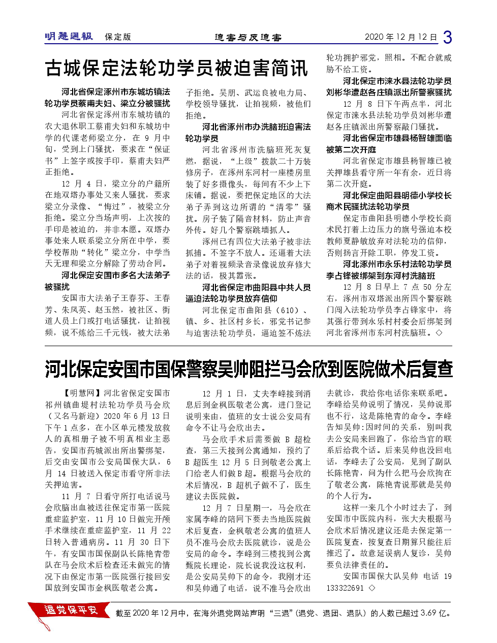 《明慧周报:保定版》 第 586 期,2020年12月12日出版